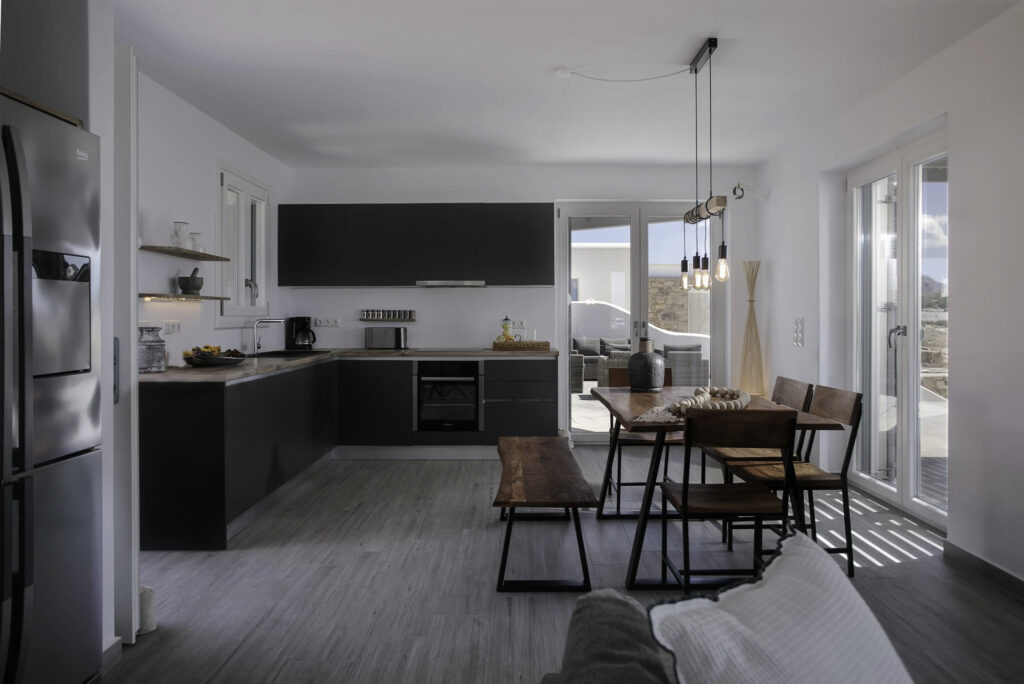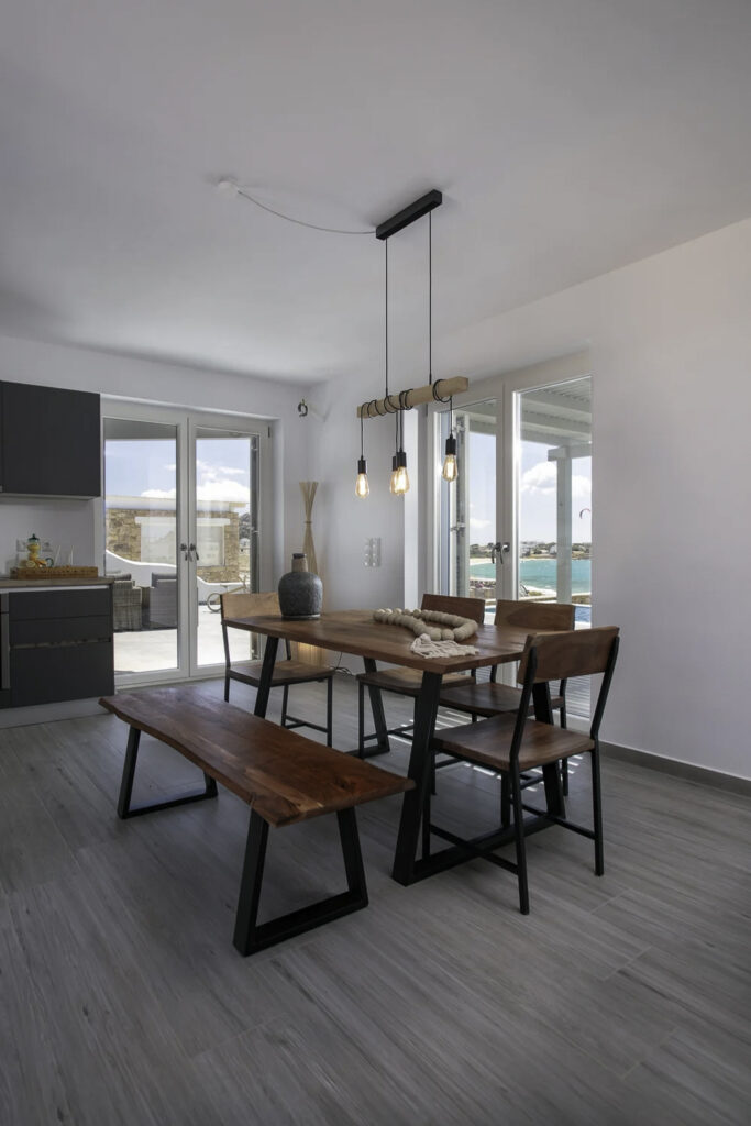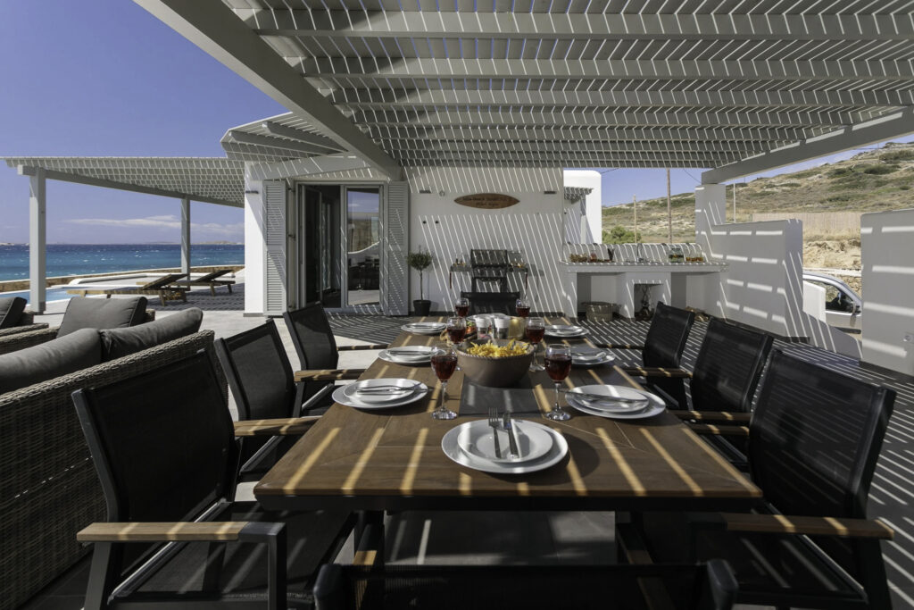 Guests can enjoy spectacular sea and mountain views, breathtaking sunsets, and a tranquil atmosphere ideal for relaxation. The villa features indoor and outdoor dining areas, an outdoor kitchen, and a private infinity pool, ensuring every moment spent here is both comfortable and memorable. Perfectly suited for families or groups, Beach Street 1 provides a stylish and serene base from which to enjoy the beauty of Naxos.
