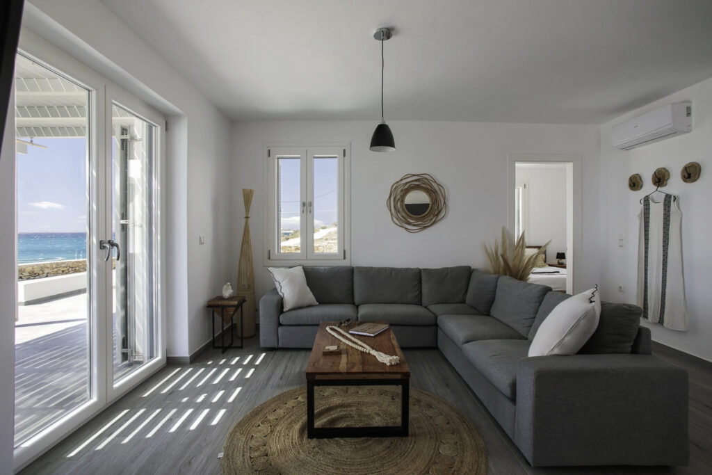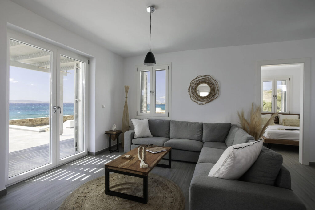 Beach Street 1 is a beautifully designed villa located just across the road from the pristine beach of Mikri Vigla, one of Naxos’ most stunning coastal areas. This thoughtfully crafted home combines spacious, elegant interiors with lush outdoor spaces, offering everything needed for an unforgettable holiday.