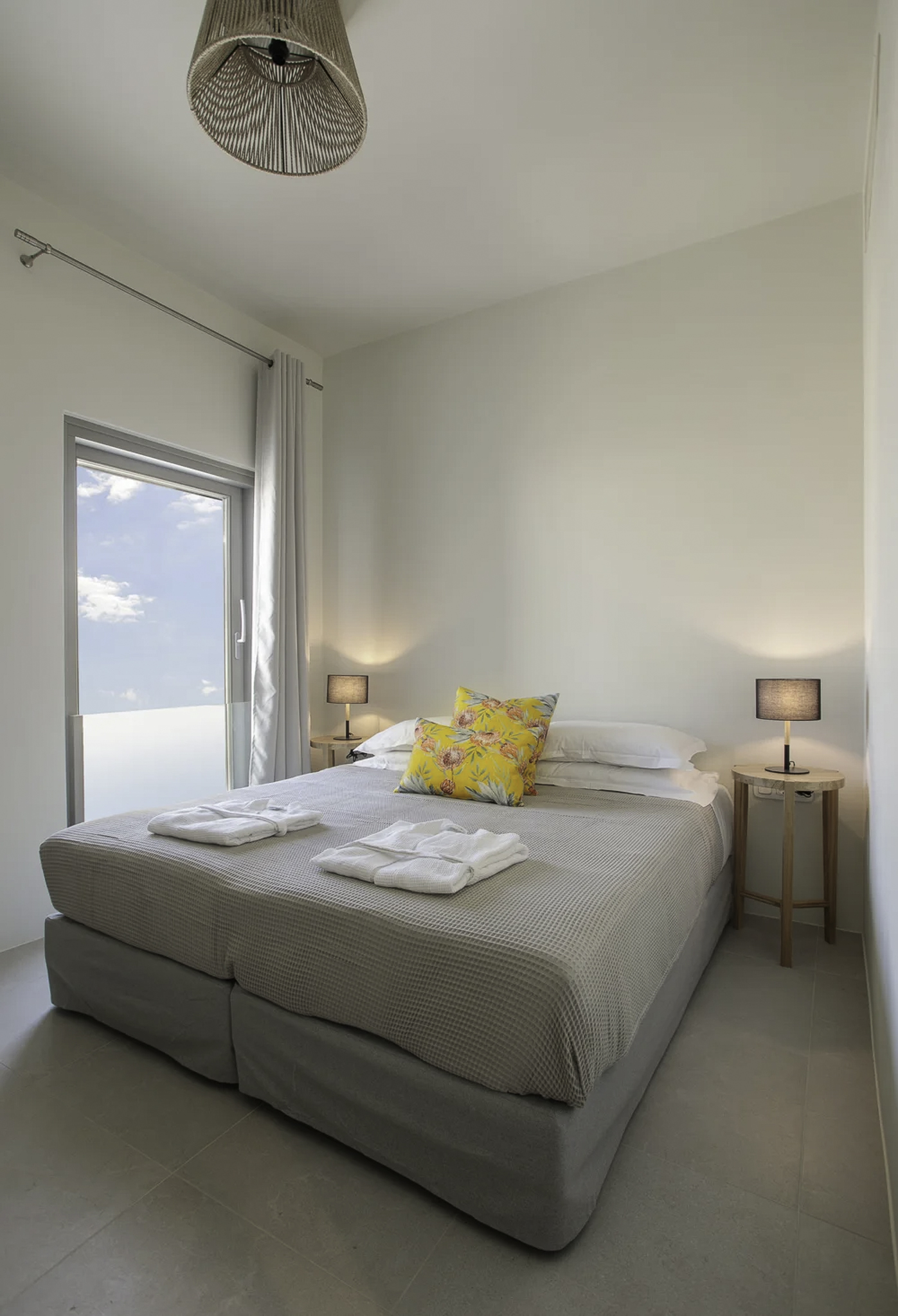 Designed with a modern aesthetic and high quality furnishings, the villa offers comfort and sophistication for a memorable Greek island getaway. Clean lines, elegant décor, and thoughtfully curated interiors create a welcoming and stylish atmosphere throughout.