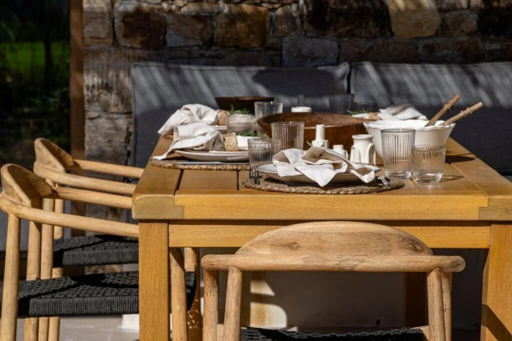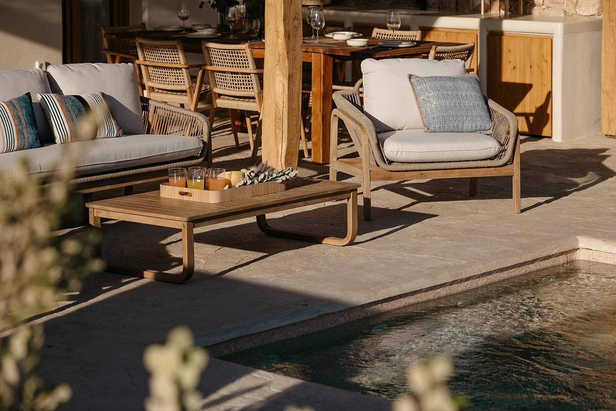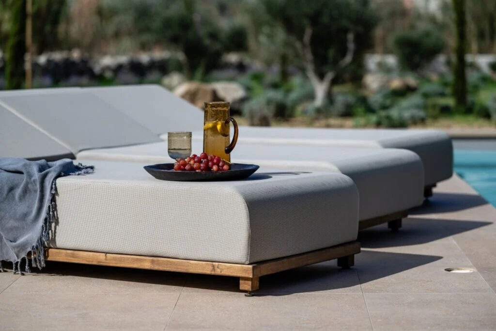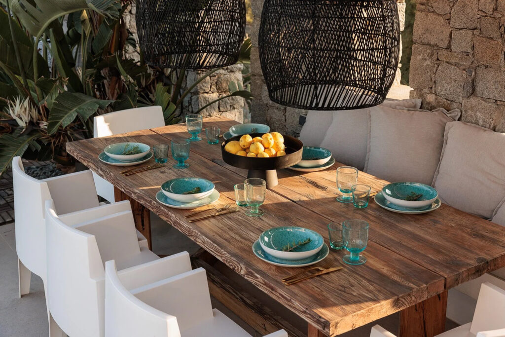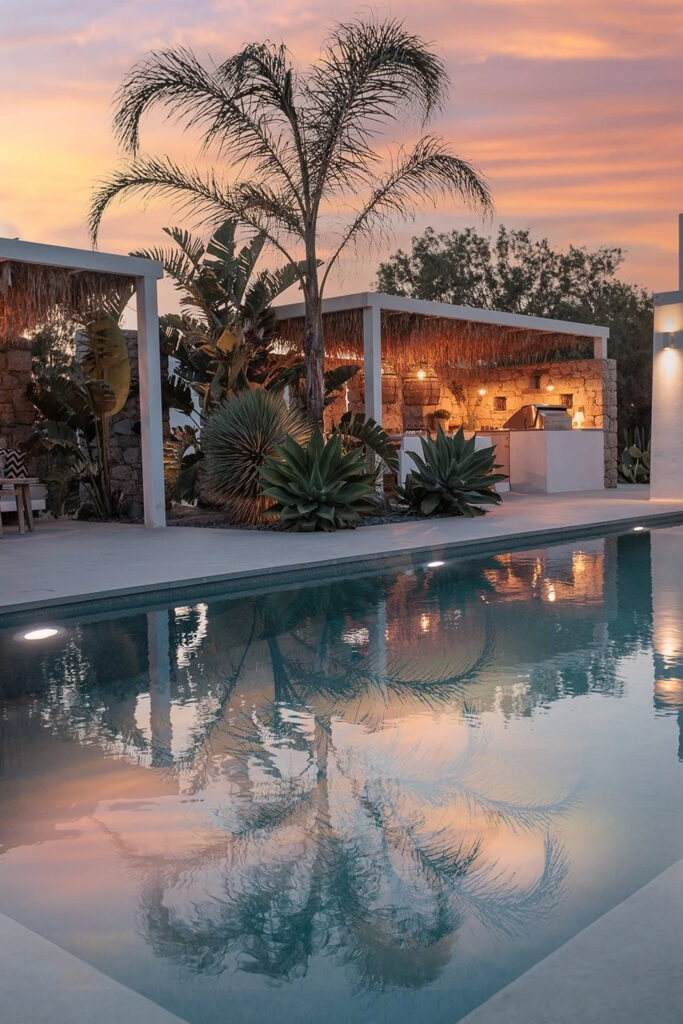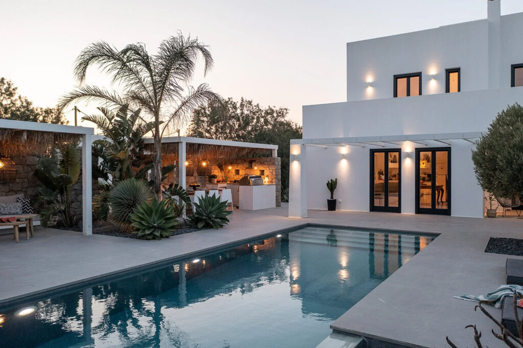 The outdoor area also includes a large outdoor dining area, a kitchenette, barbecue, and wine fridge, complemented by comfortable lounge seating. Every detail has been designed to create a serene and elegant setting, making the outdoor area one of the most captivating parts of the villa.