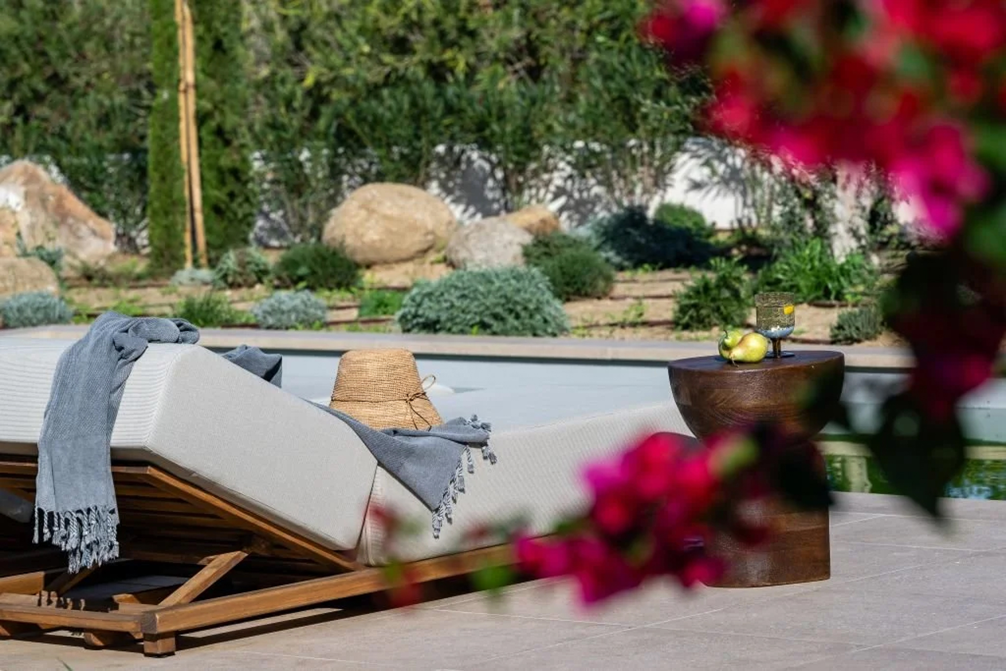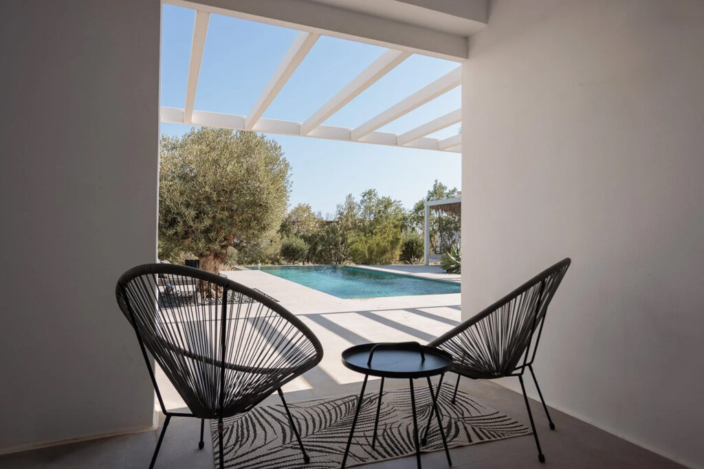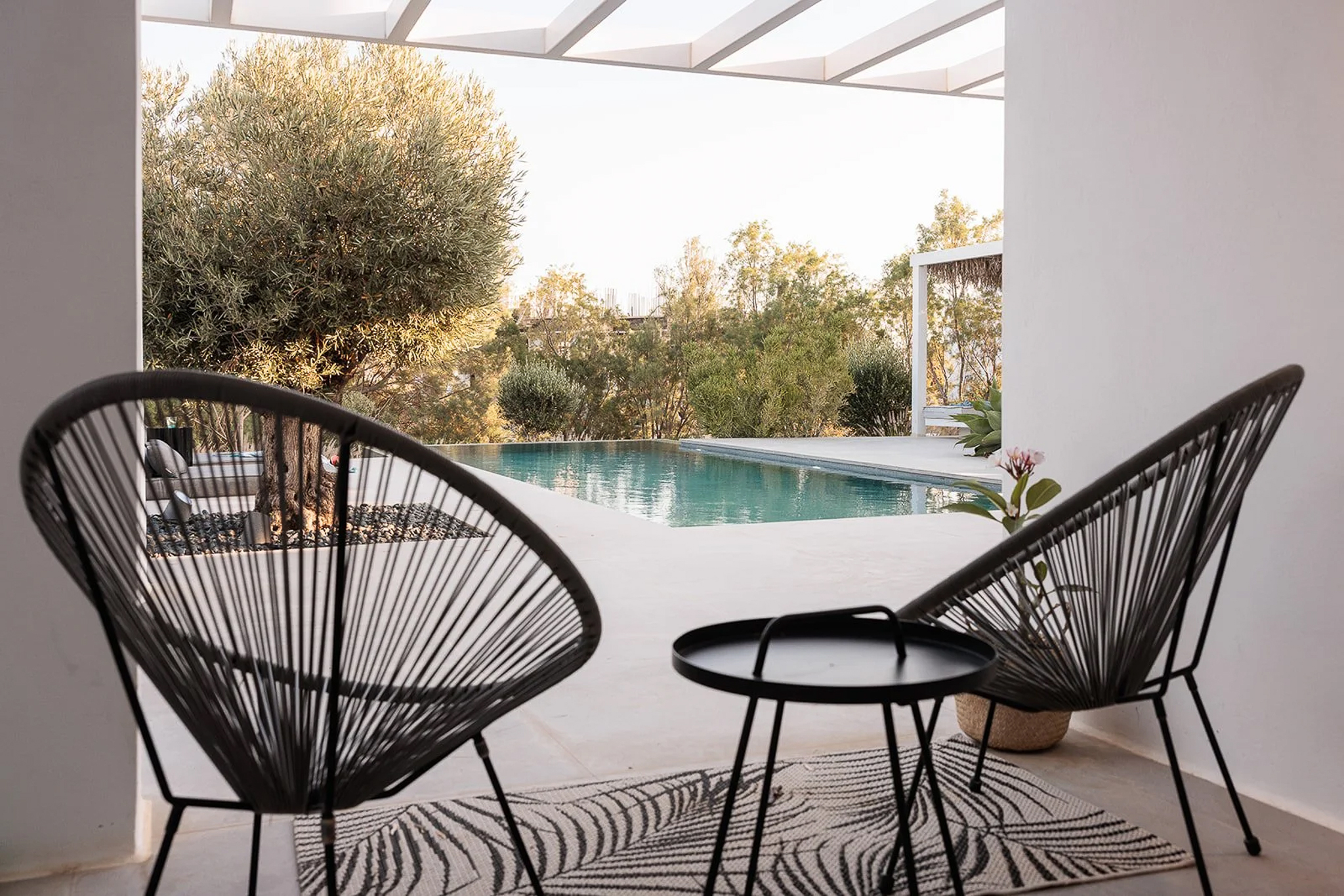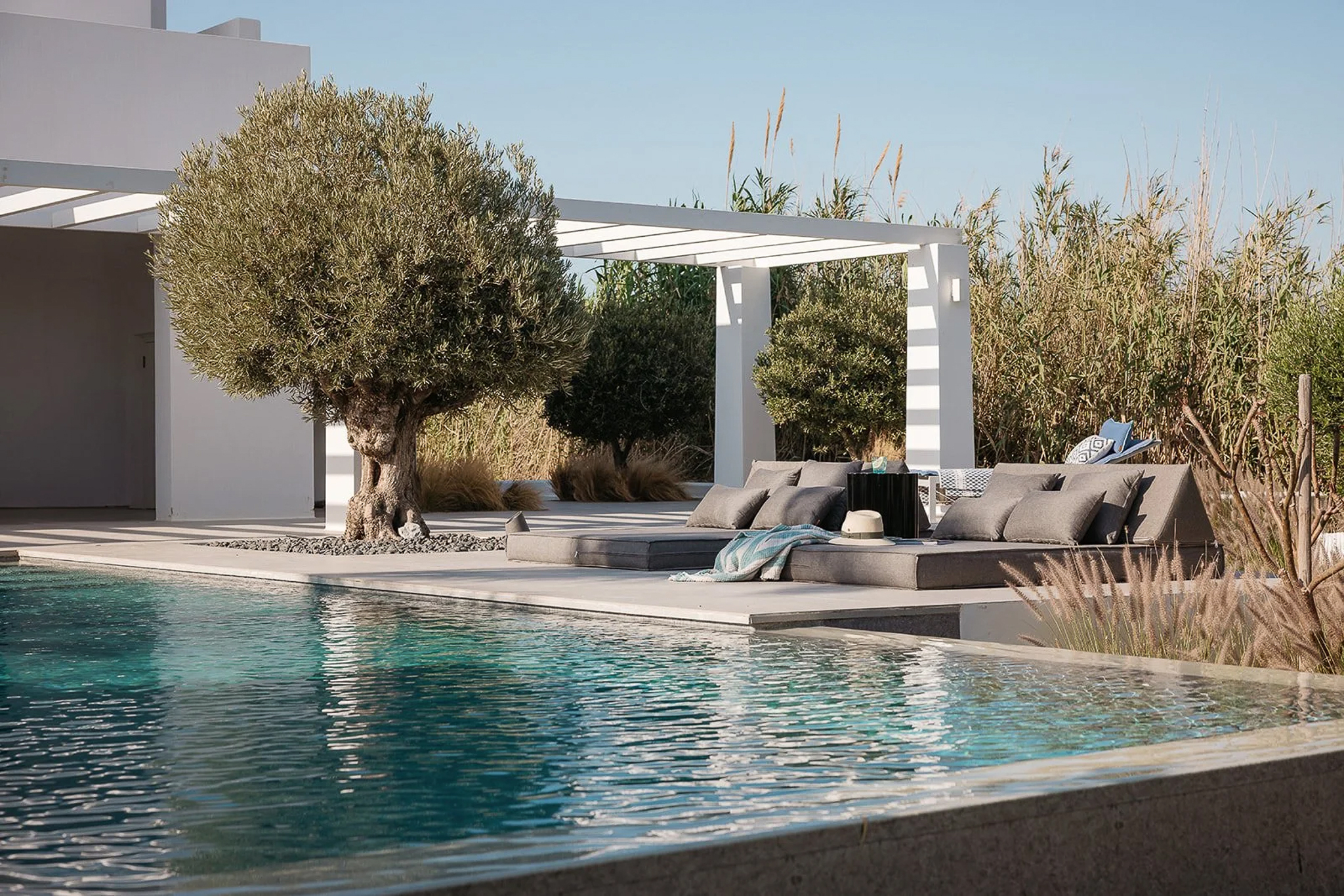 The outdoor area also includes a large outdoor dining area, a kitchenette, barbecue, and wine fridge, complemented by comfortable lounge seating. Every detail has been designed to create a serene and elegant setting, making the outdoor area one of the most captivating parts of the villa.