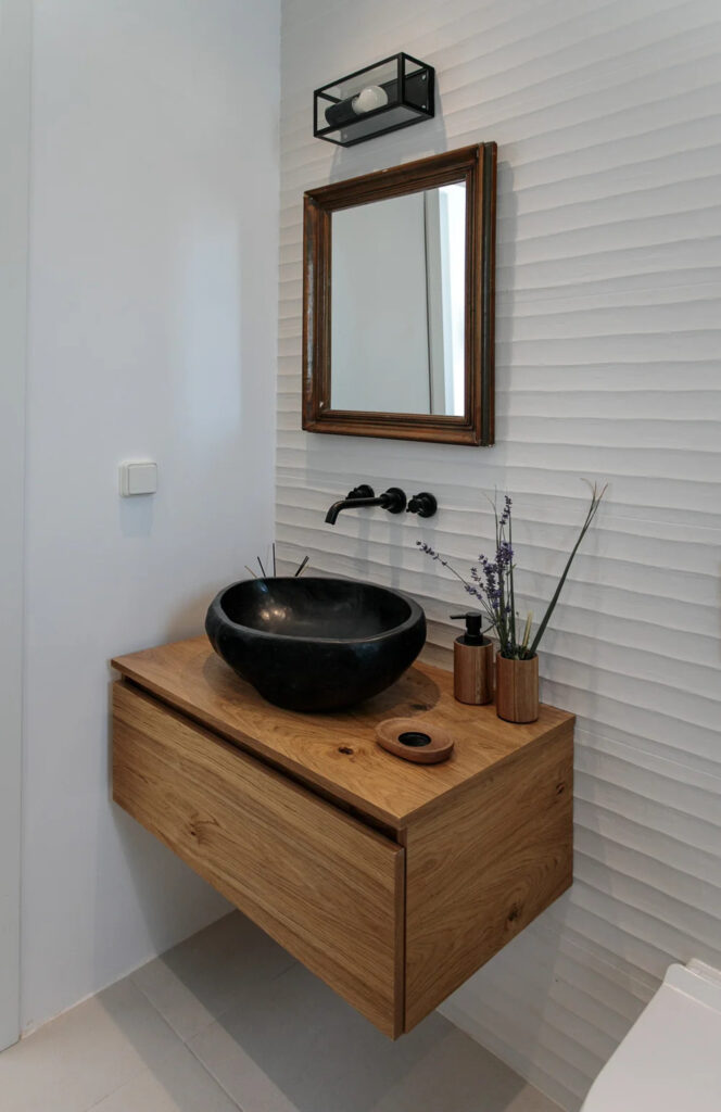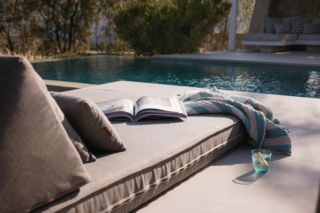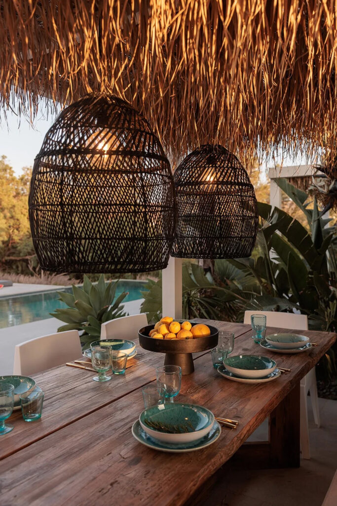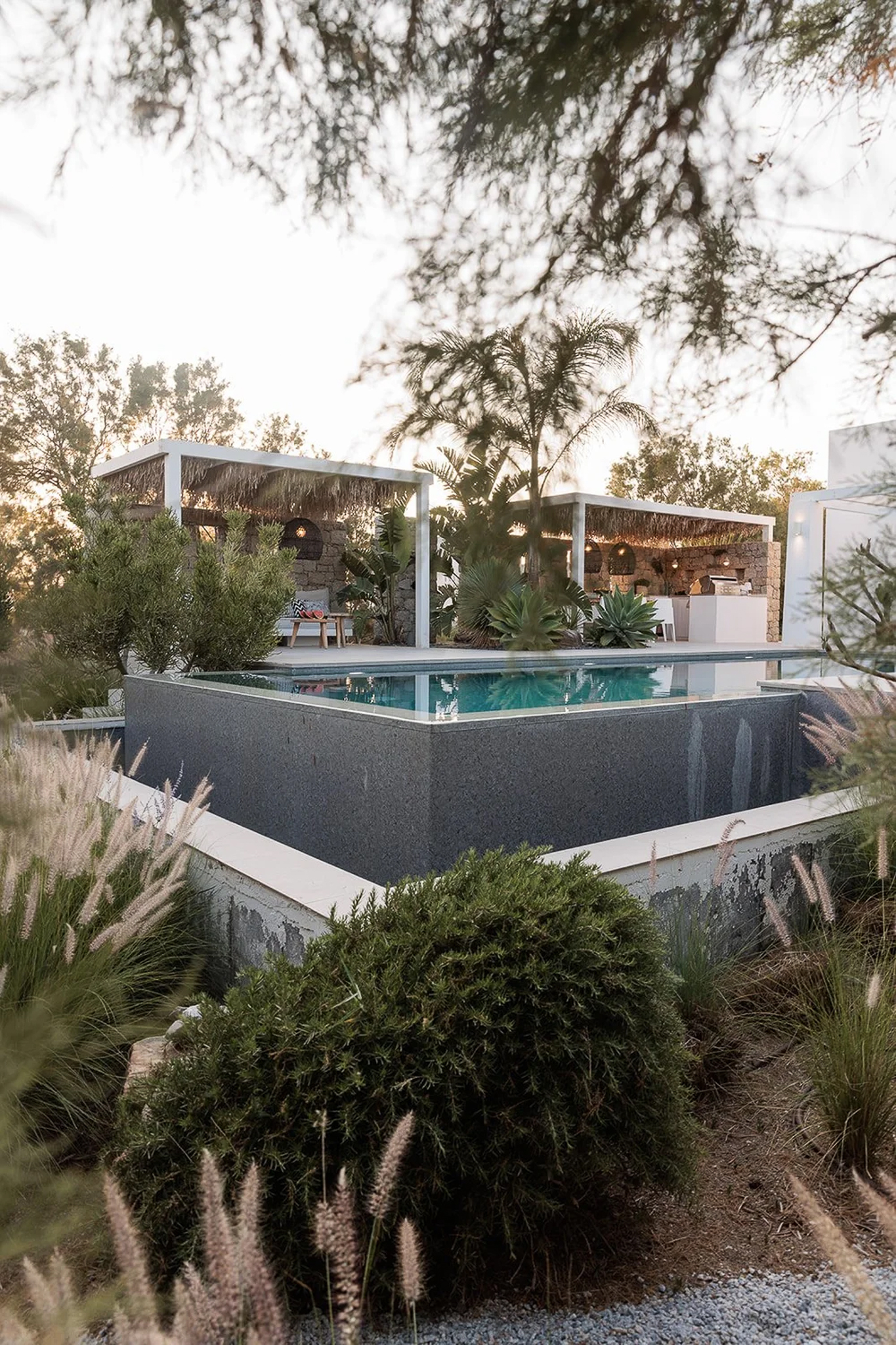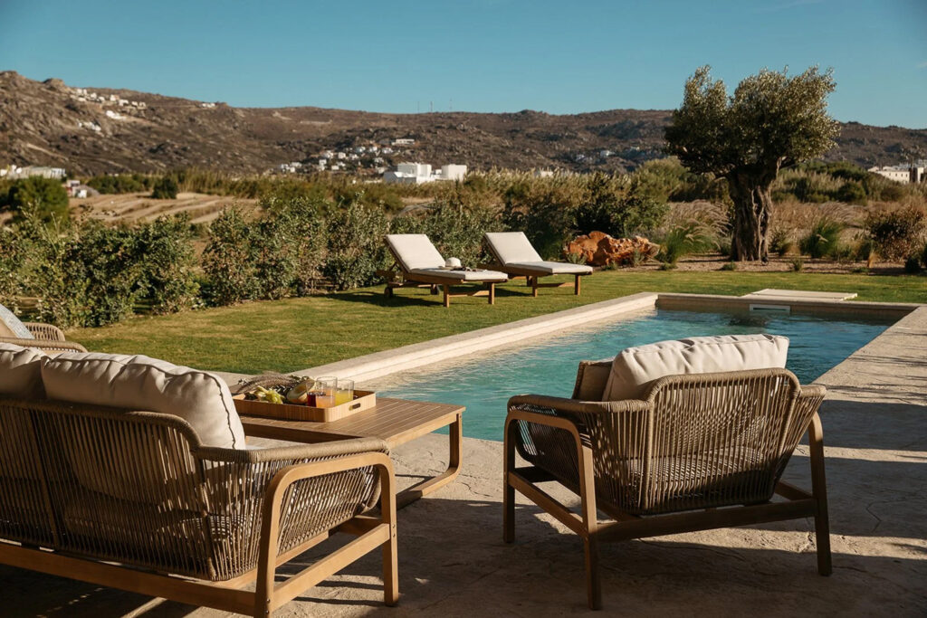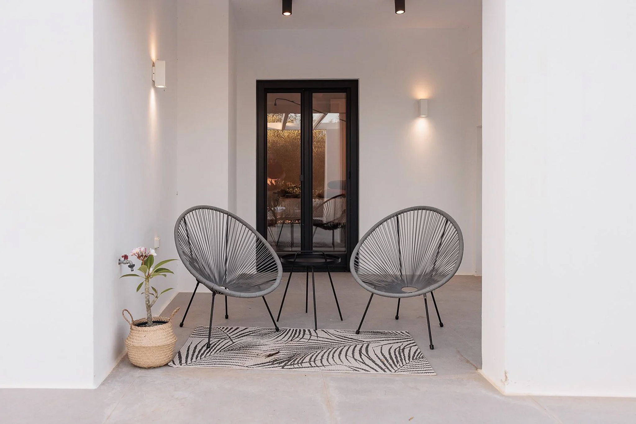 The outdoor area also includes a large outdoor dining area, a kitchenette, barbecue, and wine fridge, complemented by comfortable lounge seating. Every detail has been designed to create a serene and elegant setting, making the outdoor area one of the most captivating parts of the villa.