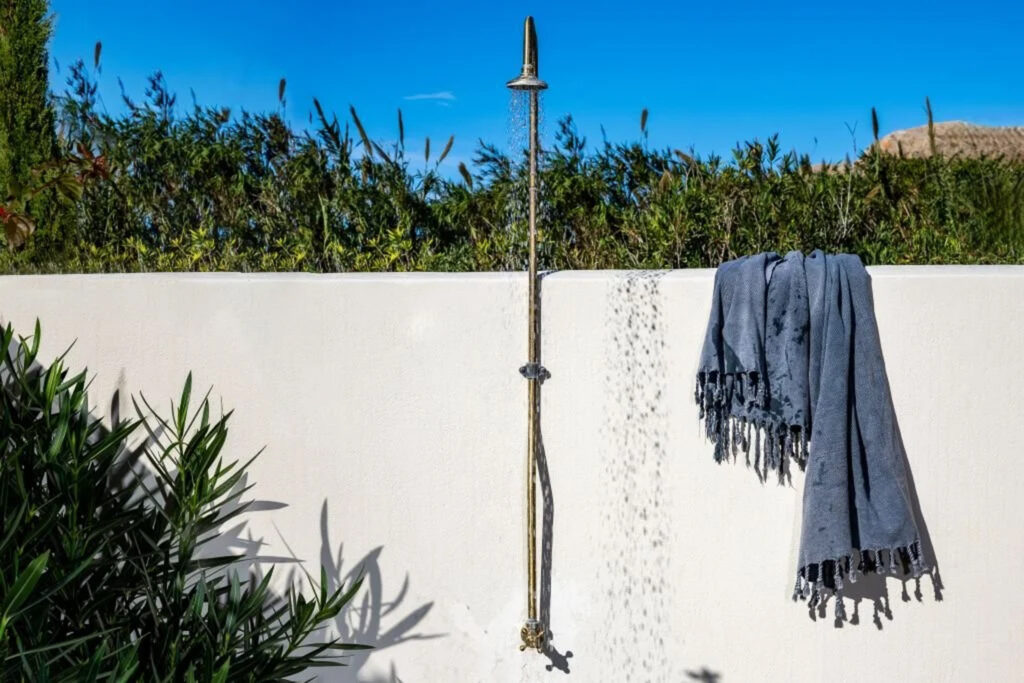 The outdoor area of Kuzulu Beach House is a true highlight of the property. Surrounded by lush landscaped gardens and tropical plants, it features a private overflow pool (3 × 10 meters) with sun loungers, perfect for soaking up the sun and enjoying complete privacy. An outdoor shower is integrated seamlessly into the garden, adding a touch of luxury.