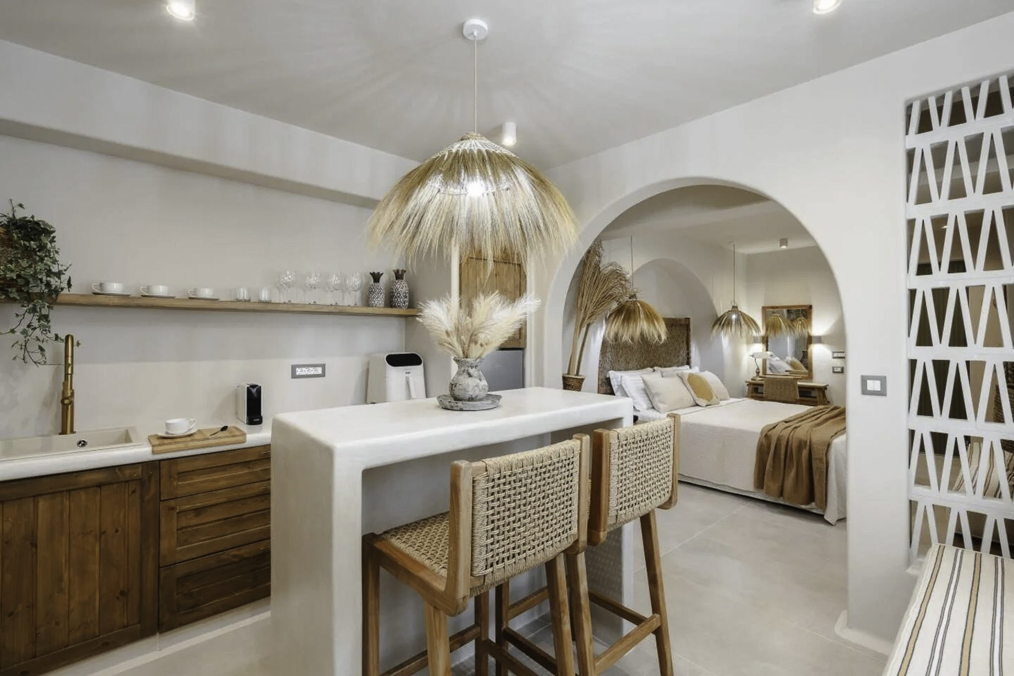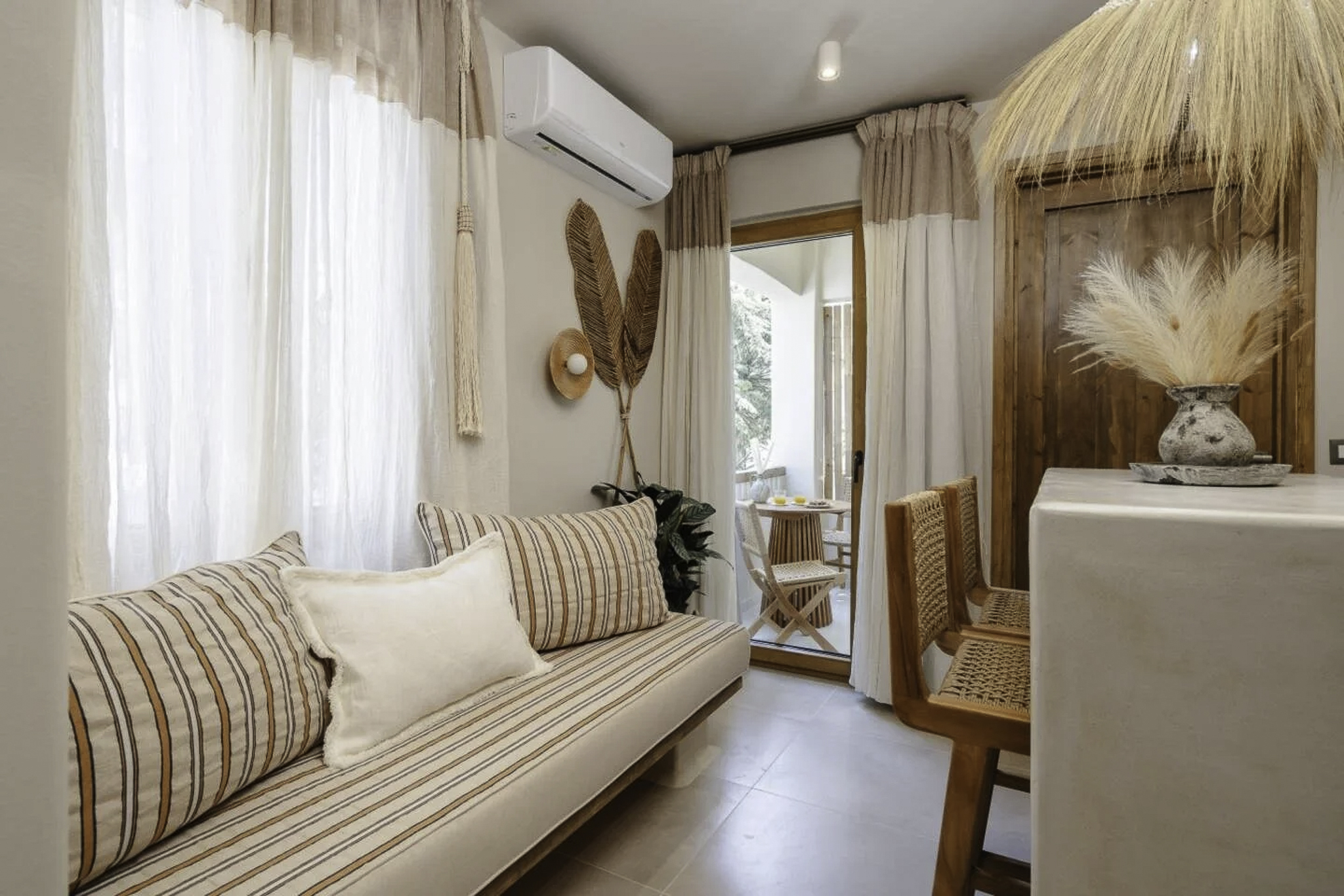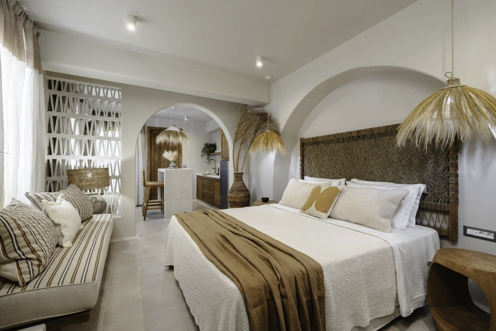 Each modern space blends chic design with Cycladic charm, featuring a cozy bedroom, contemporary bathroom, and fully-equipped kitchen. Enjoy the convenience of nearby restaurants and shops, all within walking distance. Relax in your bohemian-inspired retreat, designed for comfort and style. Experience the enchanting beauty of Naxos