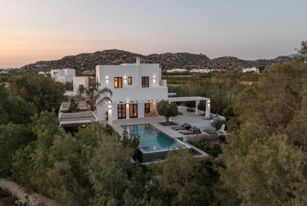 Surrounded by a lush tropical garden, the property offers peaceful outdoor living spaces, a private swimming pool, and beautiful terraces with sea views, perfect for enjoying the famous Naxian sunsets.