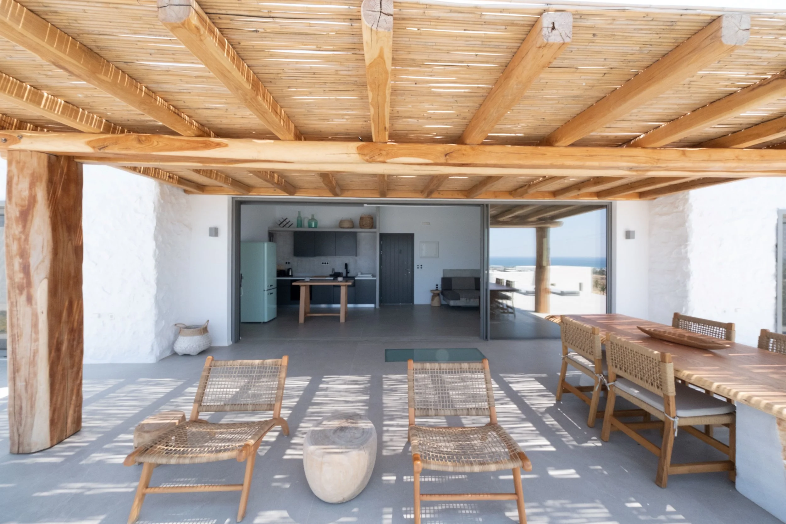 This contemporary, minimal sanctuary offers a lavish retreat amidst verdant valleys and sweeping panoramas of the Aegean Sea. Situated in Kastraki, a stone's throw away from a variety of the most beautiful beaches of the island like Mikri Vigla, Kastraki beach, Hawaii beach and Aliko, as well as a variety of taverns, a fully equipped supermarket and the most renowned wind surfing and kiteboarding spots, offering enthusiasts the perfect opportunity to indulge in these exhilarating water sports. With its ideal blend of serenity, natural beauty, accessibility, convenience and outdoor adventure, this property promises an unforgettable and enriching experience.